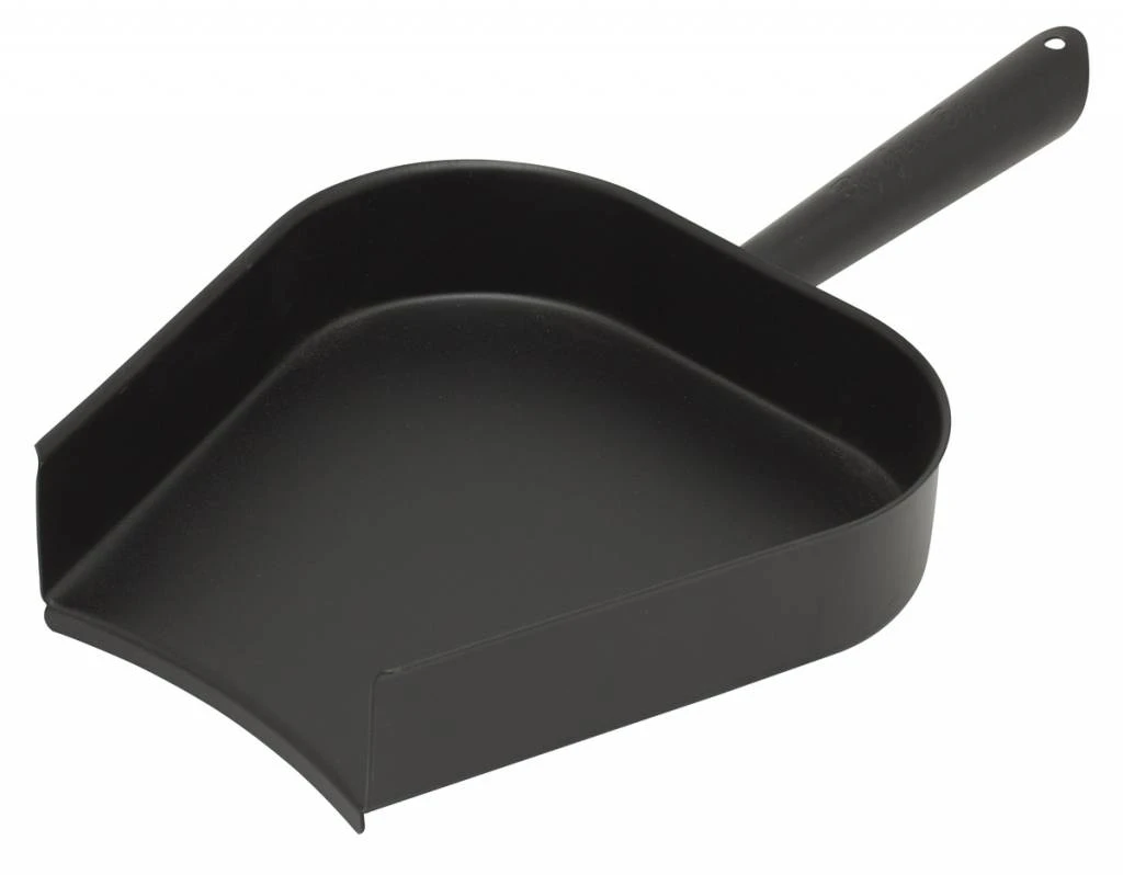 Zwarte metalen schep. Te gebruiken in combinatie met een pook. De schep sluit, door zijn ronde vorm, perfect aan op de schuif, onderaan uw Egg, waar u ook het as uit