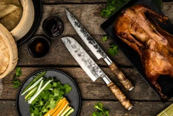 De Olive Forged messen hebben een prachtige olijfhouten handgreep, de handgreep is extra opvallend door de doorlopende krop en de toegevoegde pommel op de achterzijde. De pommel is afgewerkt in dezelfde stijl als het lemmet, waardoor alles één mooi geheel wordt. Het mes is vlijmscherp en ligt het voortreffelijk in de hand. Het lemmet heeft een gehamerde structuur. waardoor het uniek in zijn soort is