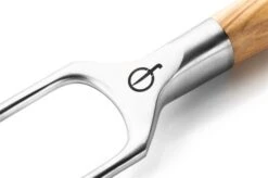 Een santoku schommelt niet op het snijoppervlak zoals het lemmet van een koksmes, dit komt door het platte lemmet. Je houdt een santoku vast bij het handvat en snijdt met een beweging van achter-boven naar beneden-voor. Bij elke snede verliest het lemmet dus contact met de snijplank.