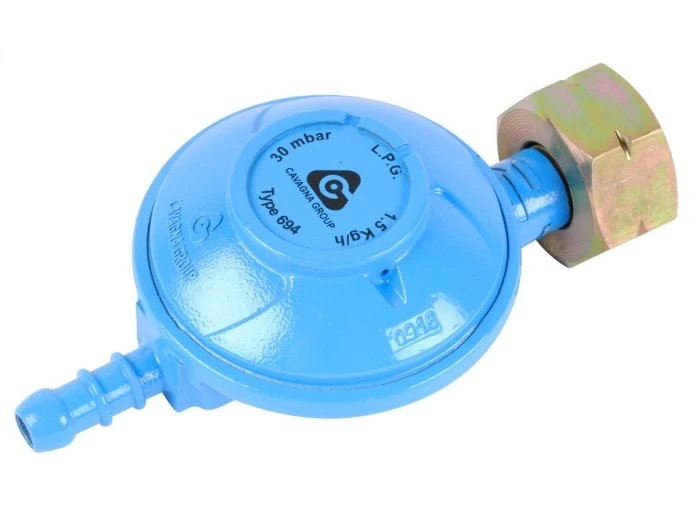 Deze drukregelaar heeft een werkdruk van 30 mbar en een slangpilaar en universele aansluiting.