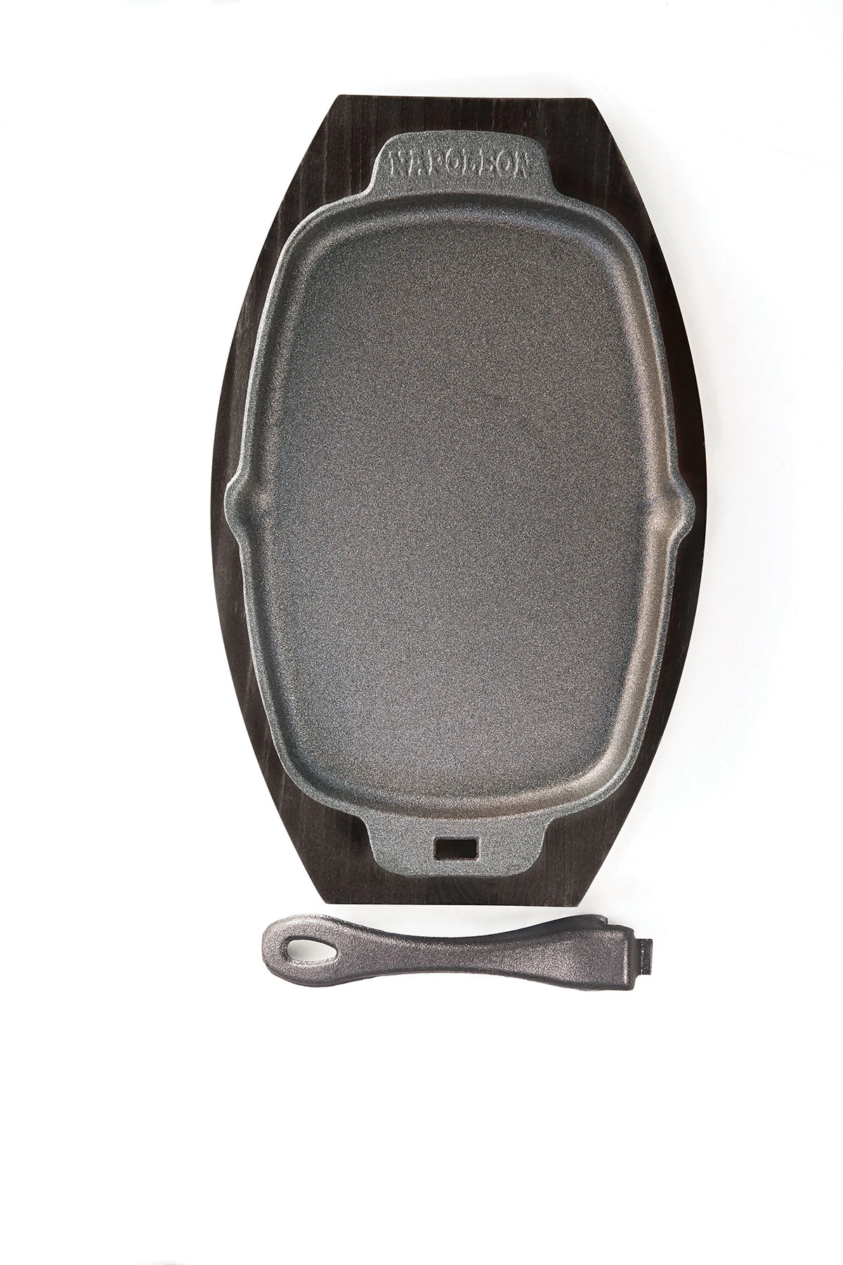De pan heeft een afneembare handgreep en wordt geleverd met een onderzetter.Â