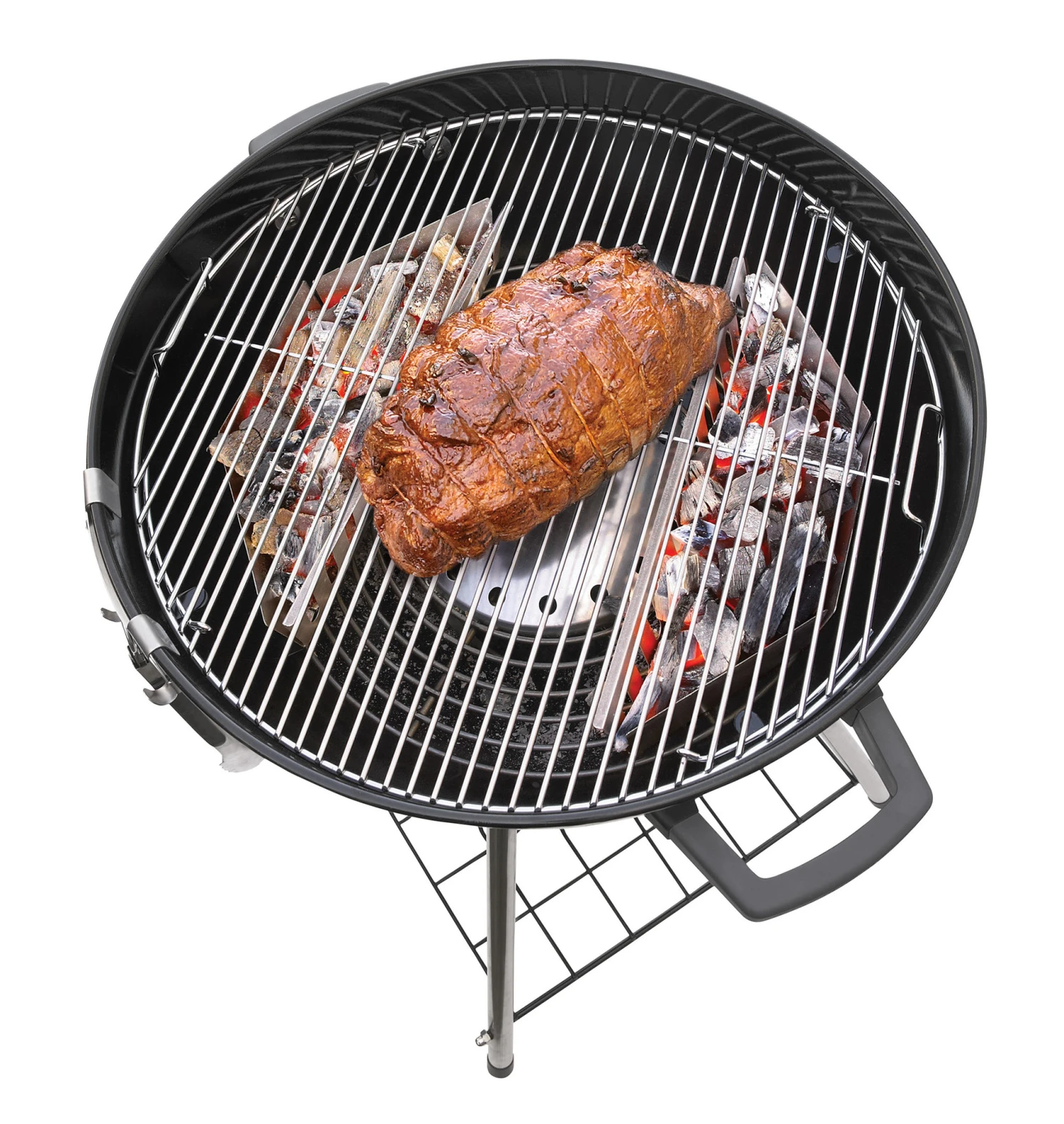 Door gebruik van deze houtskoolkorven zorg je voor verschillende warmteniveaus of zones in jouw barbecue. Je vult de beide houtskoolkorven met de kolen en plaatst ze aan de zijkant in jouw barbecue. Hierdoor is de barbecue in het midden minder heet zodat je daar rustiger kunt grillen dan aan de zijkanten.